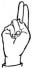 На ћирилици написано ИРИНА ГРАБОВЧИЋ састоји се из 14 слова [?]. Исписано ћириличном једноручном азбуком за глувонеме: